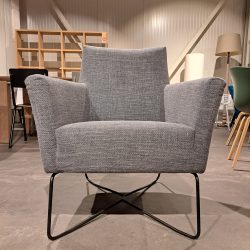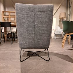 Leuke fauteuil in blauw stof welke ook nog eens heerlijk zit. Stoel is voorzien van HR schuimzitting.
