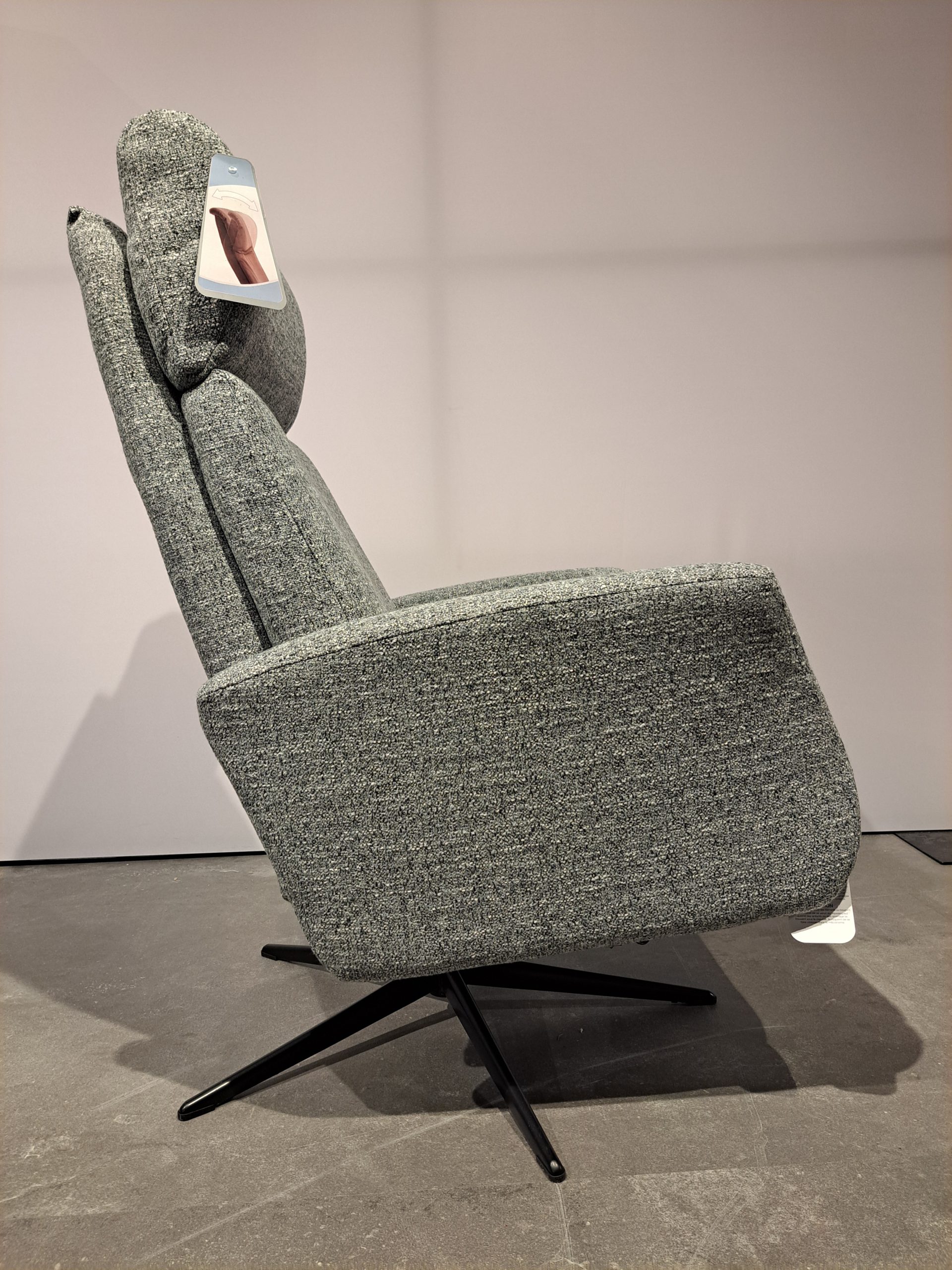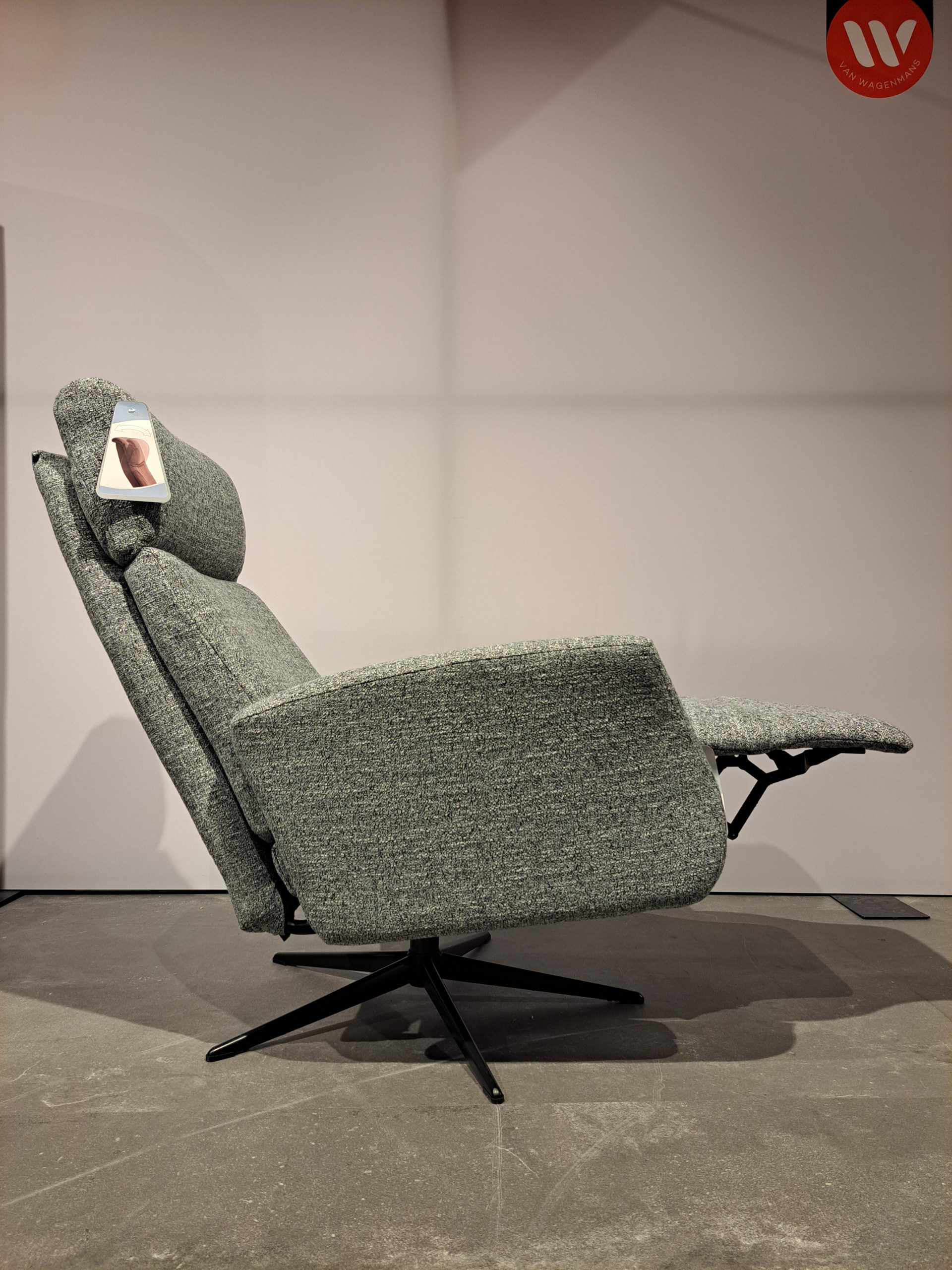 De Kees relaxfauteuil zit comfortabel en is manueel verstelbaar. De fauteuil is is bekleed in de stof Oasis en heeft een zwart metalen stervoet. Kees heeft de maat meduim.
