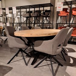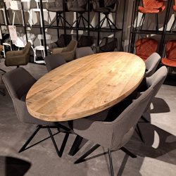 Deze massief gelakte mangohouten tafel past super mooi in een landelijk en industriële woonstijl. Door de ronding van het ovalen blad is het gezellig om met meer mensen te tafelen. Het is een toegankelijke tafel die wel de lengte van een rechthoekige tafel heeft. Het onderstel is een spinpoot met zwarte poedercoating. Bestel de tafel online in meerder maten of kom gerust lang bij ons in de winkel om de tafel in het echt te bekijken.