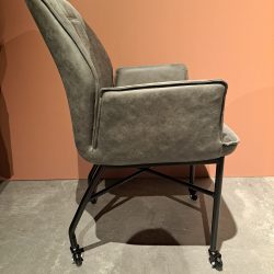 De Nina eetkamerstoel is een stoere, industriele stoel op soepel rollende parketwieltjes. Deze stoel is verkrijgbaar in een antraciet, cognac of groene kleur.