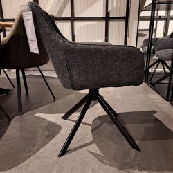 De Noi eetkamerstoel is de perfecte combinatie van design en comfort en past in vele interieurs thuis! De kuip heeft een comfortabele zit. Noi is bekleed in de stof Chill Graphite, dit is een weefstof. De kuip wordt gedragen door een metalen spinpoot. Tevens is de Noi eetkamerstoel voorzien van een 180 graden draai-return systeem, de zitting draai vanzelf terug. Zo kunt u gemakkelijk in en uit stappen aan de eettafel.
