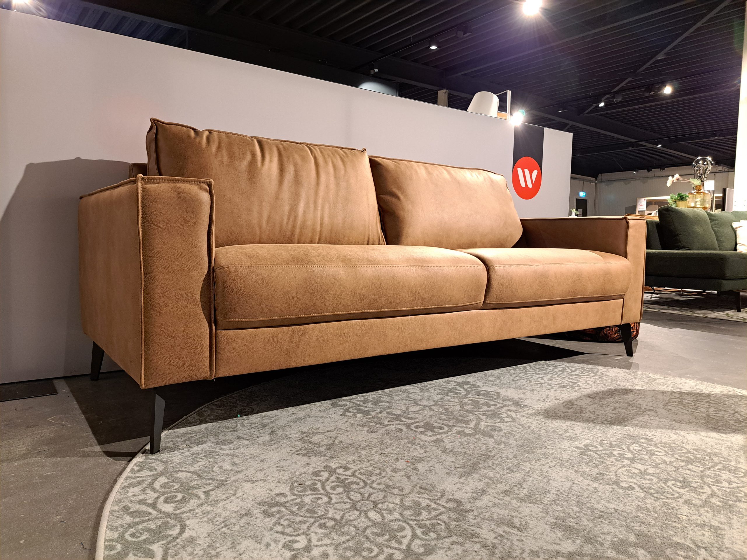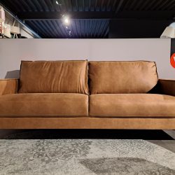 De Nordic club 3 zits bank is uitgevoerd in de stof Kentucky Cognac. Deze stoere 3 zitter heeft losse rug kussens en stevige pocket springs zitting. Daarnaast staat de bank op schuine metalen pootjes.