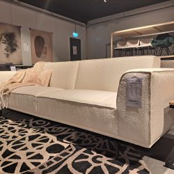 De 3-zitsbank heeft een fijn zitcomfort en biedt voldoende ruimte om een heerlijk te ontspannen. Voldoende ruimte om heerlijk te ontspannen. De bank is bekleed met een Boucle stof die zacht en warm aanvoelt. De 3-zits bank is modern en tijdloos.