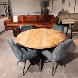 • Wie denkt aan gezellig met elkaar kletsen aan tafel denkt ook al snel aan een ronde eettafel. De robuust gelakte mangotafel met gekruist zwart gepoedercoat onderstel past in een stoere woonstijl. Is deze tafel iets voor jou? Bestel de tafel online of kom langs bij onze Woonoutlet in Lemelerveld.
