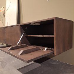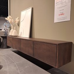 De stijlvolle zwevende TV-dressoir Sam is gemaakt van prachtig mangohout. Het is echt een eyecatcher! Strak, elegant en past perfect in elke moderne ruimte. Sam heeft 4 kleppen en is uitgevoerd in de trendkleur Walnoot.