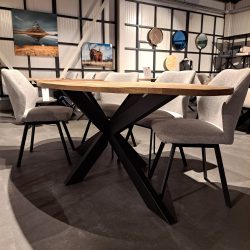 Een stoere eetkamertafel met ovale vorm, dat is eetkamertafel Wenum. De eetkamertafel is 210 cm lang bij 100 cm breed. Wenum heeft een Mangohouten blad en is naturel afgelakt. De eetkamertafel heeft een zwart metalen onderstel met een poedercoating. Liever een ander formaat? We hebben de Wenum eetkamertafel ook met een lengte van 210 cm. Kom de tafel bekijken in onze woonoutlet in lemelerveld.