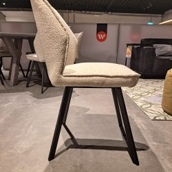 De eetkamerstoel Wiebe is een perfecte combinatie van comfort en stijl. Ontworpen om je eetruimte te verrijken met zijn tijdloze elegantie. Bekleed in een luxueuze ecru boucle stof.Wiebe heeft een zachte textuur en de subtiele tint een uitnodigende sfeer creëren voor lange, gezellige diners en levendige gesprekken.