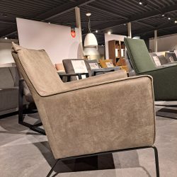 De Winze fauteuil past in ieder interieur. Deze moderne fauteuil is bekleed in een bull-leder. Winze is voorzien van een lage rug en heeft een smalle zwarte frame poot.