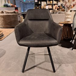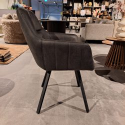 • De Wish eetkamerstoel met arm is 180 graden draaibaar en draait automatish terug. De eetkamerstoel is gestoffeerd in een bull-leder. Met de Wish eetkamerstoel kunt u urenlang comfortabel tafelen. De zitting steunt op een stevig metalen frame met 4 poten.