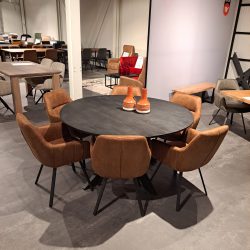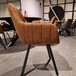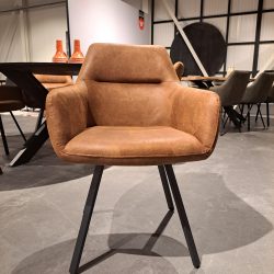De Wish eetkamerstoel met arm is 180 graden draaibaar en draait automatish terug. De eetkamerstoel is gestoffeerd in een bull-leder. Met de Wish eetkamerstoel kunt u urenlang comfortabel tafelen. De zitting steunt op een stevig metalen frame met 4 poten.