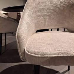 Eetkamerstoel World is een stijvolle toevoeging aan de eetkamertafel. World heeft een hotel chique uitsraling en is gestoffeerd in de stof fushion wit. De zitting leund op een zwart stalen frame. Benieuwd hoe de stoel zit? Kom dan gezellig proefzitten in Lemelerveld.