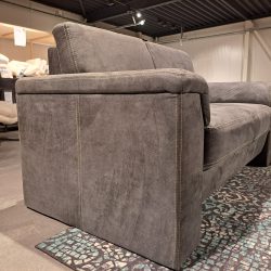 Bankstel Wytze heeft een stevige zit. De bank is uitgevoerd in een sterke antraciet kleurige stof met contrast stiksels. De armleuningen lopen door tot aan de grond. benieuwd hoe de bank zit? kom dan proefzitten bij ons in Lemelerveld!